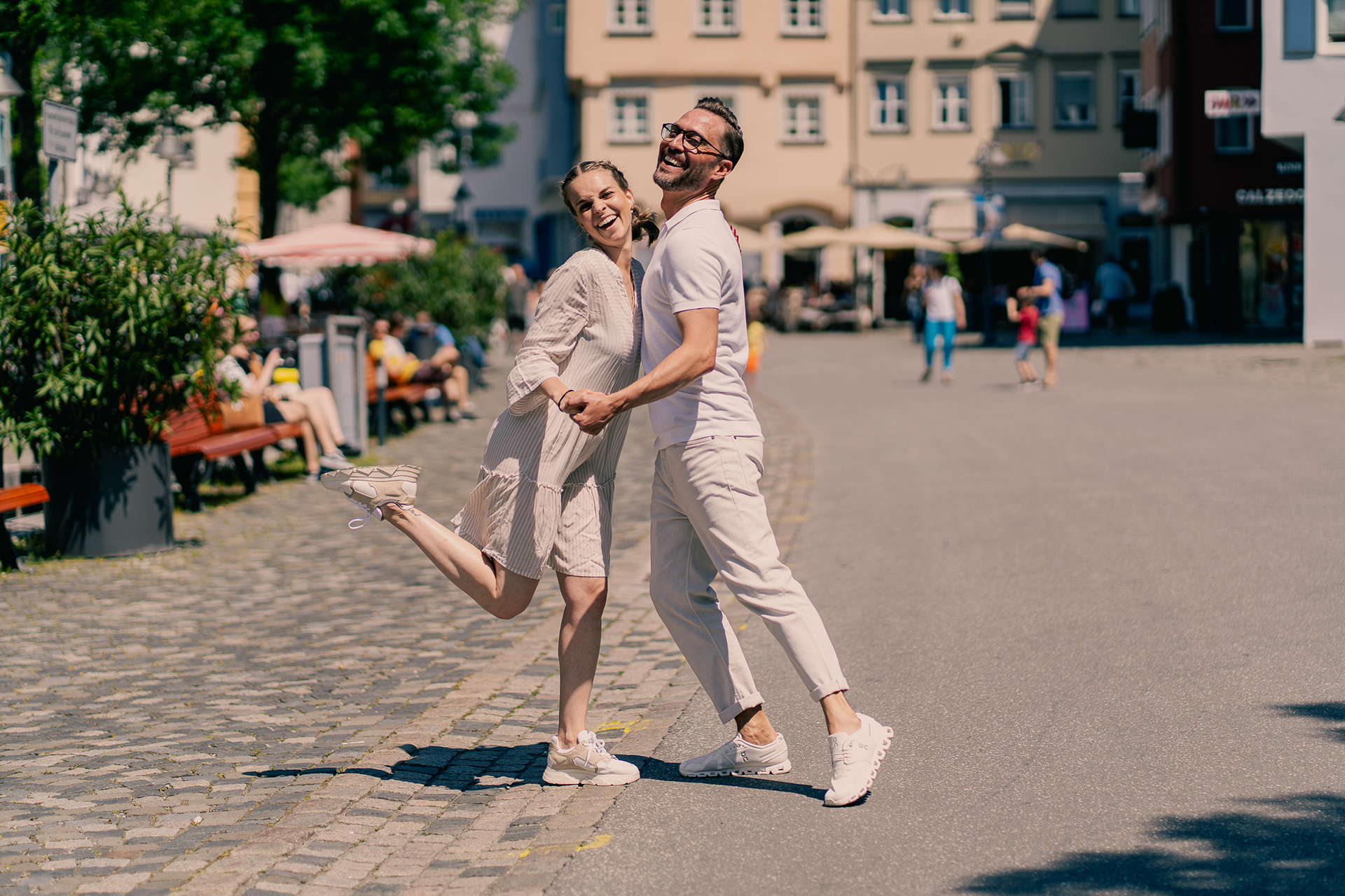 Ein zentraler Bestandteil des Rebrandings war es, eine Bildsprache zu entwickeln, die die Essenz der Tanzschule einfängt. Statt auf Stockbilder zurückzugreifen, haben wir uns für authentische Fotoshootings entschieden. Bei den Shootings standen tanzende Paare, die Dynamik der Trainer:innen und die positive Atmosphäre der Kurse im Fokus. Wir haben bewusst bekannte Ravensburger Locations gewählt, um die lokale Identität zu stärken.